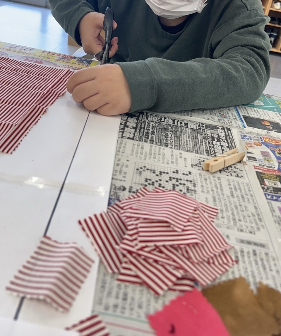 切る・ちぎる・巻く・貼る・書く・塗る・縫うなど得意な作業を工程別に担当し、1つの作品を完成させます。