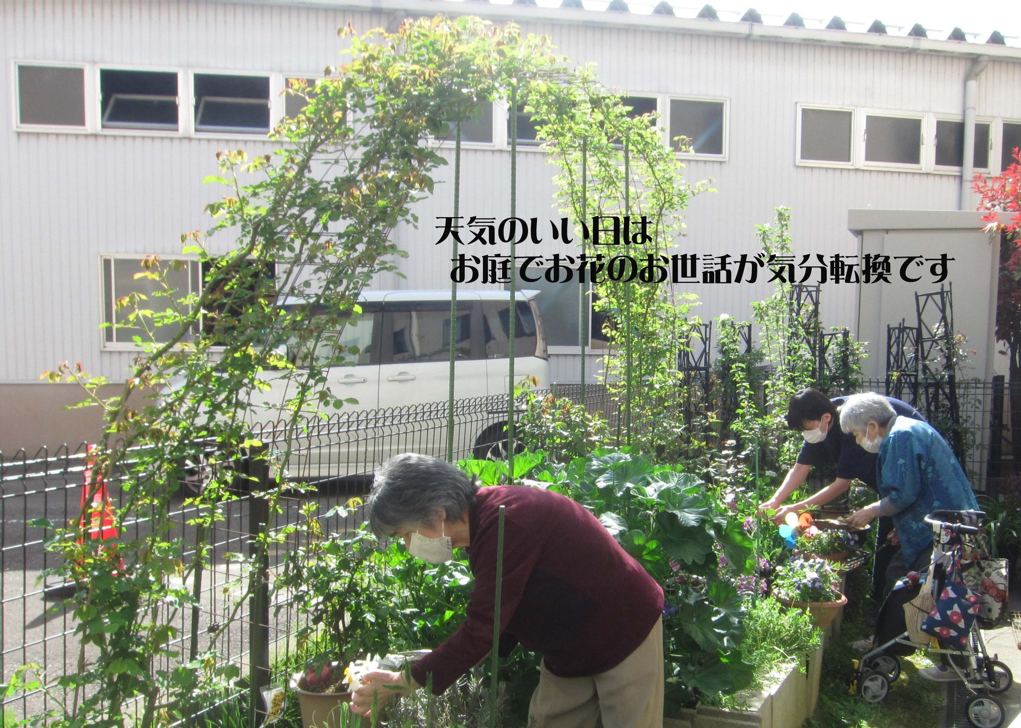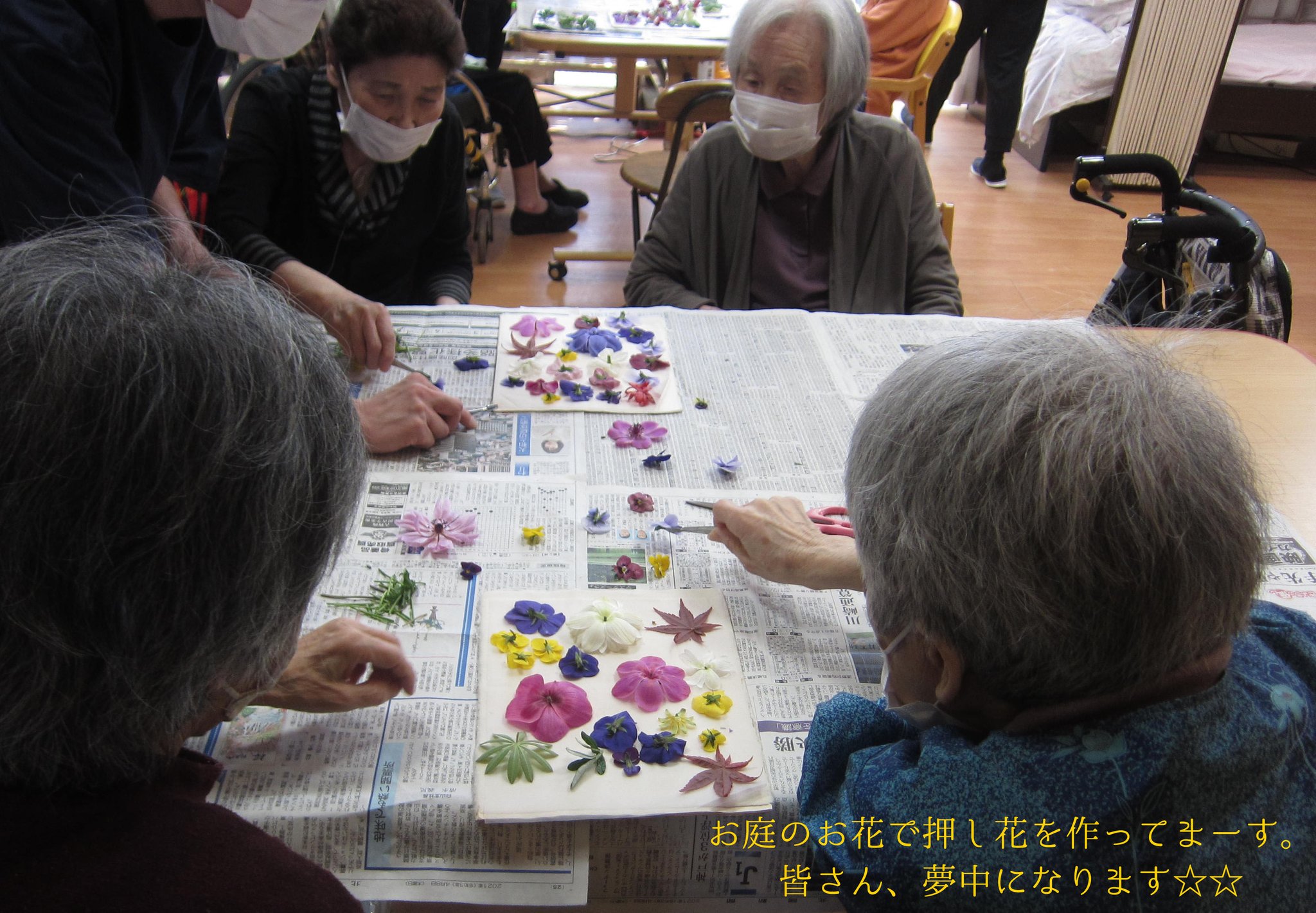 押し花でリースやハガキ作りを楽しんだり、花を育て花にふれる事で癒しと楽しみを共有します。この活動で季節の花々に囲まれたデイサービスを叶えたいと思っています。